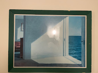 Hotel has some Hopper paintings hanging in the hallway. (Note: reflections)