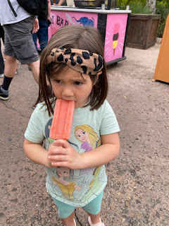 Disney offers these After Hours event for selected parks from 10 pm to 1 am. For tonight it was EPCOT, and the price was $159. One could start the "party" as early as 7 pm, although the park would still be quite crowded as it doesn't close until 9. The Disney buses were running sporadically (bad traffic) so Joe Jr and I took a Lyft to the park. We did Spaceship Earth at 9:20 pm, and finished with Remy at about 12:15 pm. In that 3 hour time slot we basically walked from attraction t attraction, with none to minimal wait times (some of them still took a while because of pre-shows), packing away nine of them (the others were: Test Track 2x, Space green, Moana Walk, The Seas with Nemo and Friends, Soaring, Figment; Joe skipped Space). After our first "Test Track" run the operator just offered us a second time around without our needing to get off. Those two back-to-back rides, however, caused a nauseousness feeling that I couldn't completely shake for the rest of the evening. Also, the Figment ride was a lot less exciting without the Dream Catcher. The Skyliners weren't running, and most eateries were closed; but soft drinks, ice cream, and pop corn were free. I had an ice cream sandwich. It was around 1 am that we got back to the hotel.
